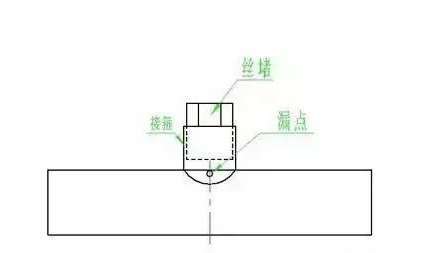 (1)當漏點呈一小圓孔時,可用石棉繩一段壓入小孔,然后用尖頭小錘砸緊,再由外向內(nèi)逐步焊住,焊接時電弧不可直接吹向漏點。