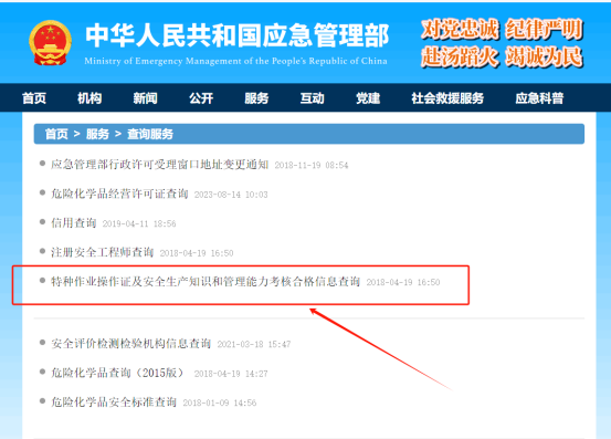 步驟 1:點擊“特種作業(yè)操作證及安全生產(chǎn)知識和管理能力考核合格信息查詢”。