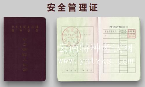 鍋爐、壓力容器、電梯、起重機械、客運索道、場(廠)內(nèi)專用機動車輛的管理人員統(tǒng) 稱為特種設(shè)備安全管理人員,代號:A。證書全國通用,國網(wǎng)查詢。4年一復(fù)審,由昆明 市市場監(jiān)督管理局頒發(fā)。
